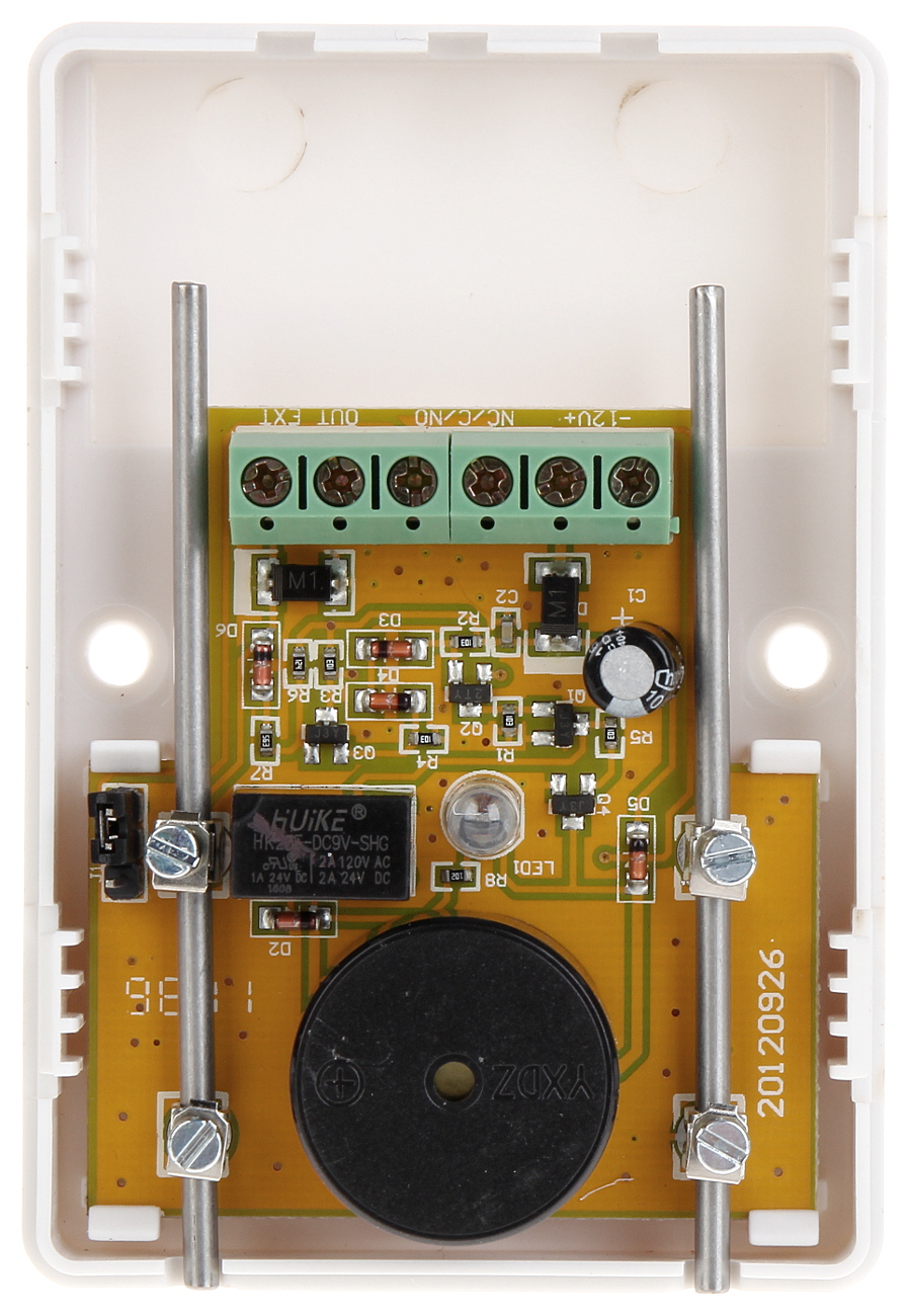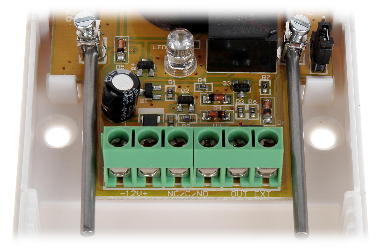 Czujka sygnalizuje alarm jeśli wykryje wstrząsy lub drgania np. podczas próby sforsowania drzwi lub okna