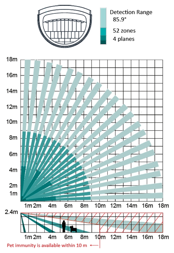 | Odporność na zwierzęta: | 10 kg – (w strefie do 10m), wymaga zastosowania adaptera |