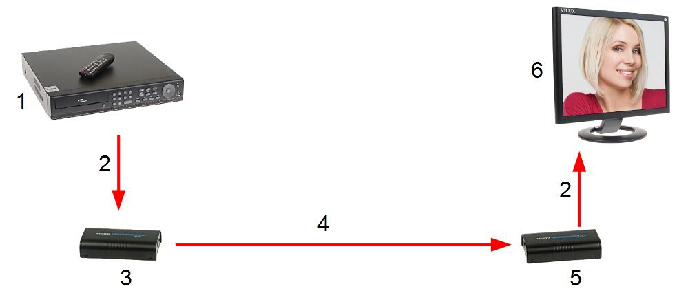 Urządzenie umożliwia przesył sygnału wysokiej rozdzielczości do odbiornika telewizyjnego wyposażonego w złącze HDMI poprzez skrętkę komputerową kat. 5e, 6.