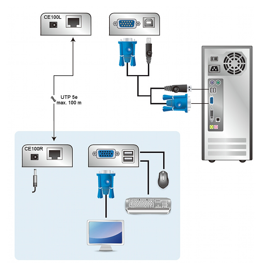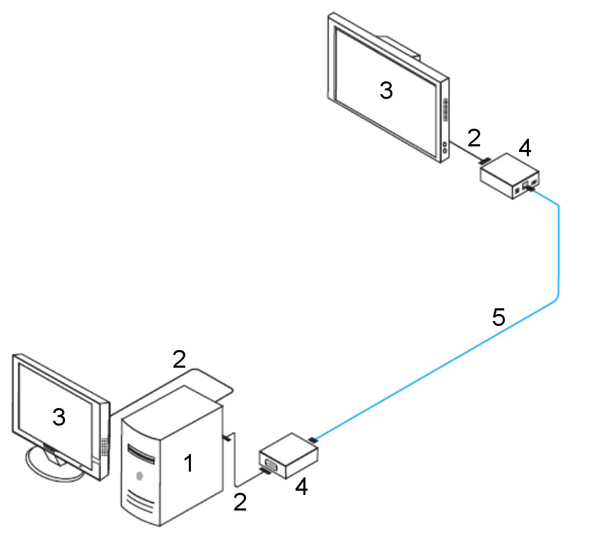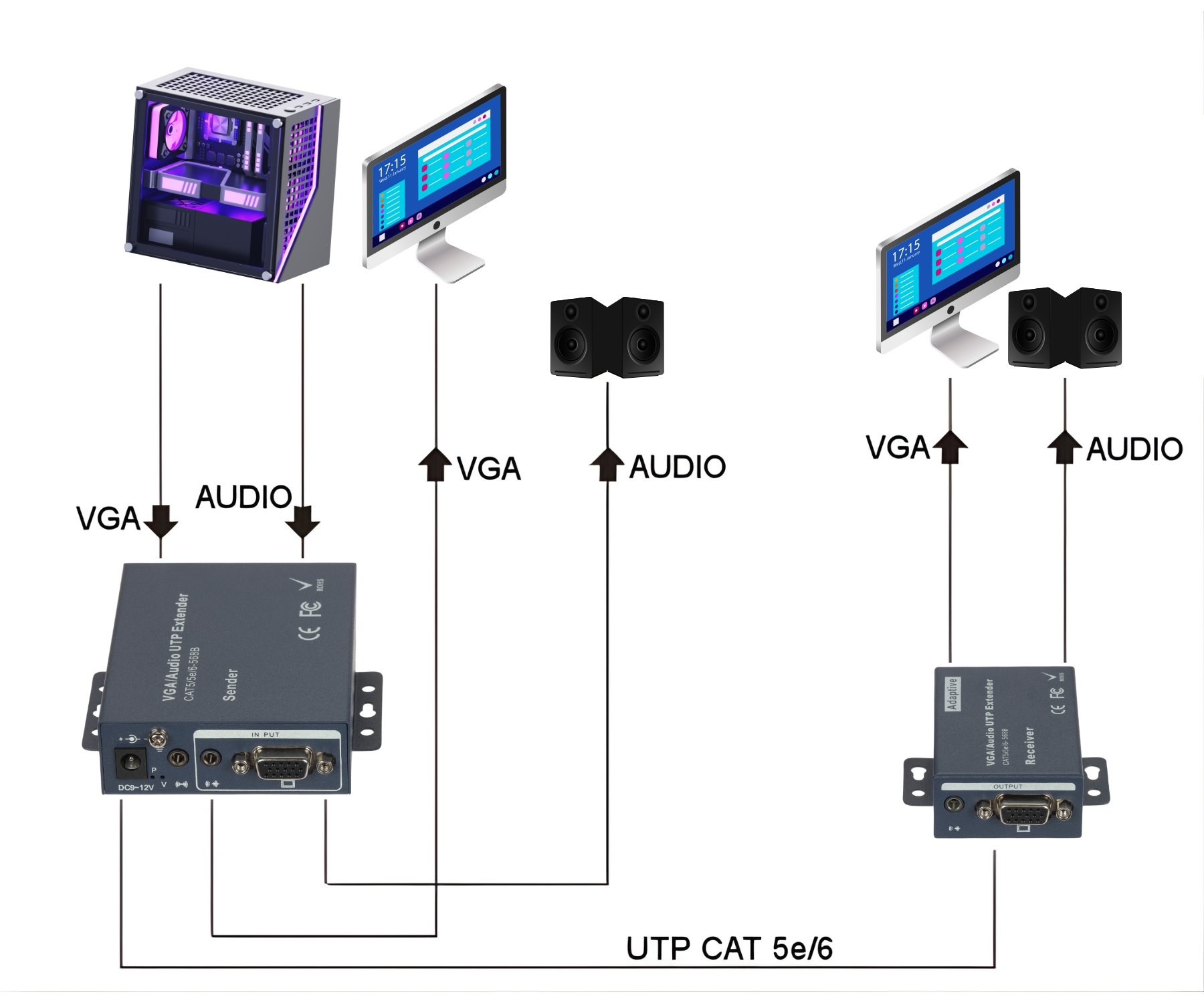 Nadajnik dokonuje symetryzacji sygnału VGA umożliwiając jego transmisję po skrętce komputerowej.