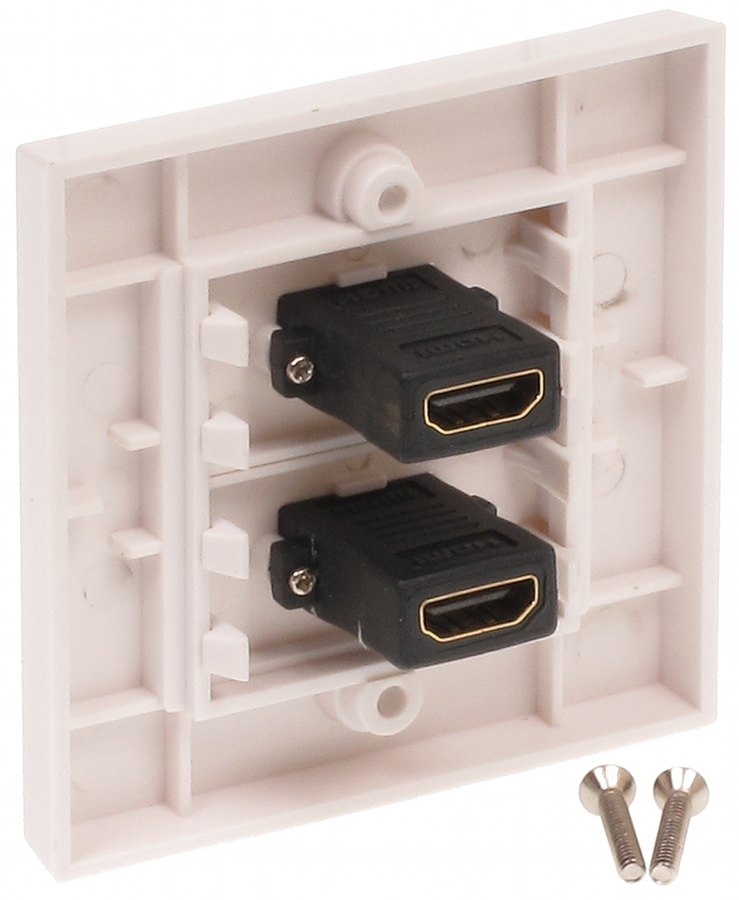 Podwójne gniazdo HDMI odpowiednie do mocowania na puszce podtynkowej..