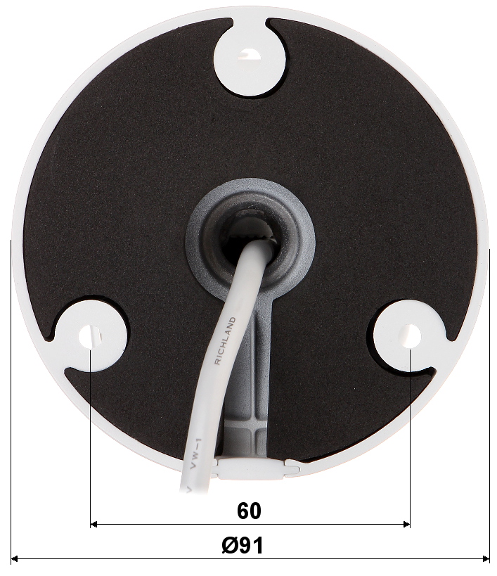 Uchwyt kamery posiada regulację we wszystkich trzech płaszczyznach, a kable zasilające są schowane w jego wnętrzu.