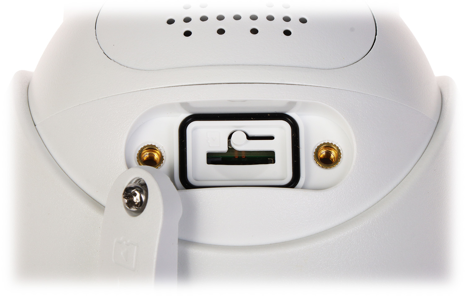 Uchwyt kamery posiada regulację we wszystkich trzech płaszczyznach, a kable zasilające są schowane w jego wnętrzu