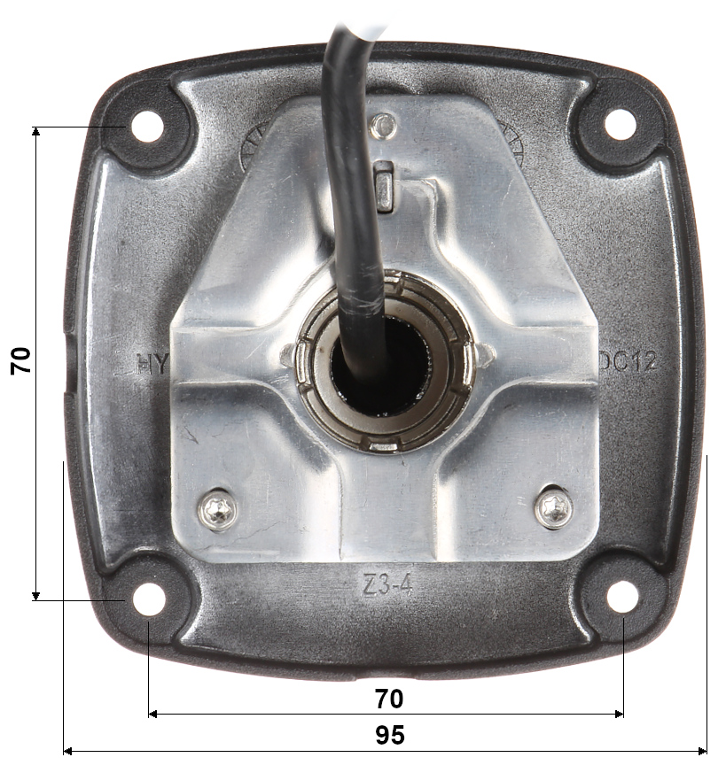 Uchwyt kamery posiada regulację we wszystkich trzech płaszczyznach, a kable zasilające są schowane w jego wnętrzu