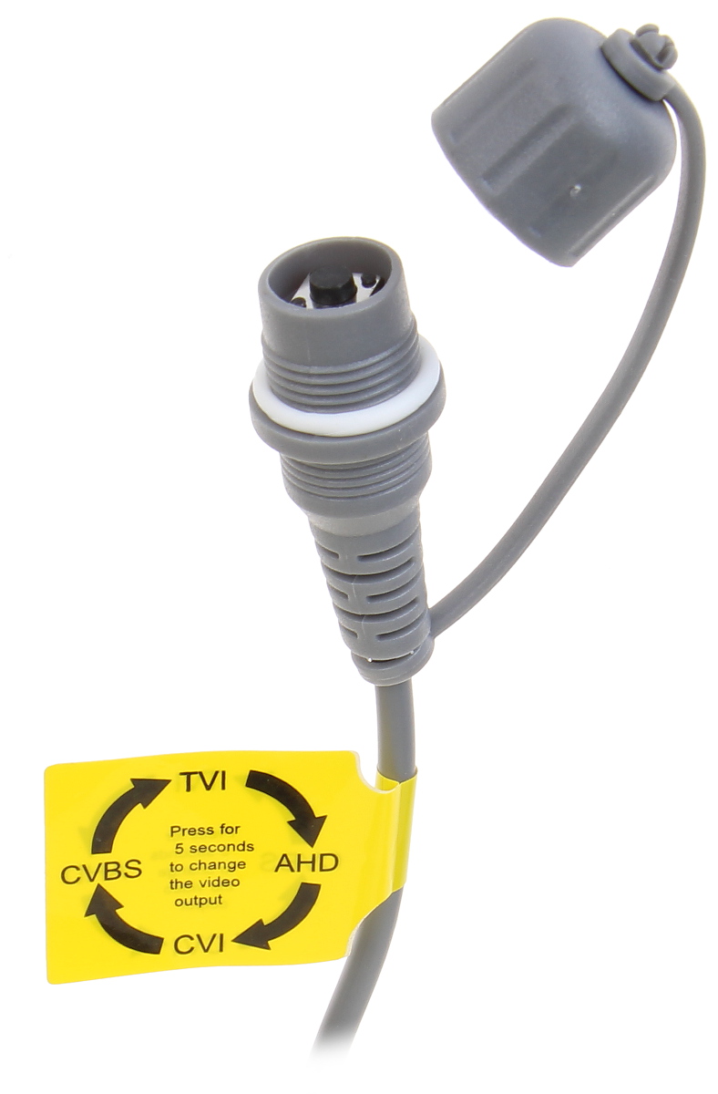 | Wyjście wideo: | 1 Vpp 75 Ω, AHD / HD-CVI / HD-TVI / PAL – Do zmiany standardu, w którym pracuje kamera, wymagany jest kontroler PFM820 |
