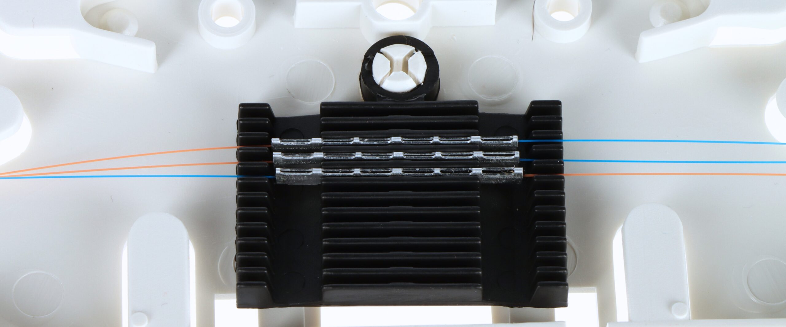 Kaseta światłowodowa z tacką spawów na 12 włókien do przełącznicy światłowodowej;