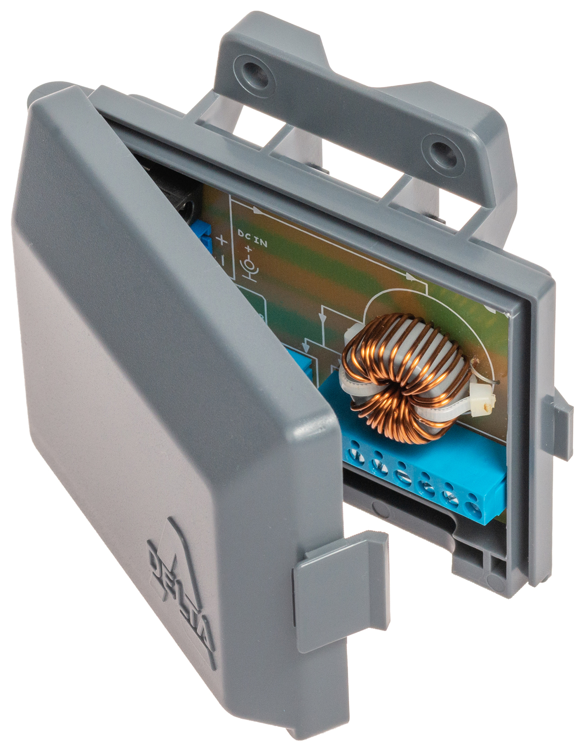 Dodatkowo zastosowano w niej filtr eliminujący zakłócenia wprowadzane przez zasilacze impulsowe oraz ogranicznik przepięć zasilania