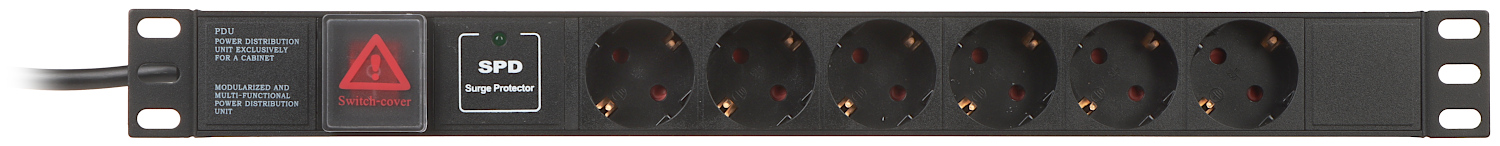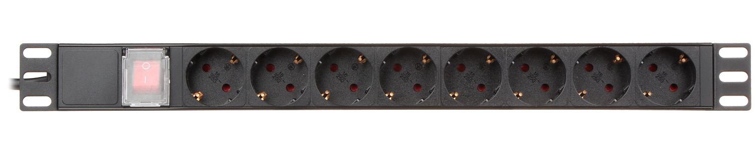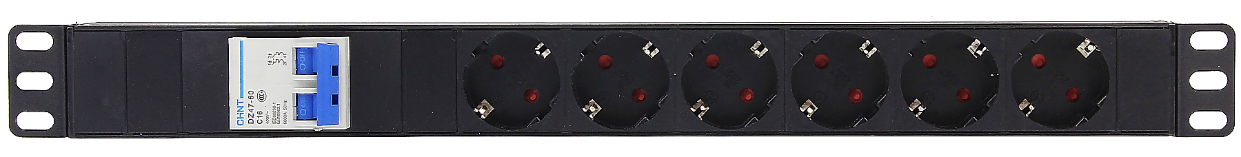 Listwa zasilająca L19/6S o wysokości 1U przeznaczona do zabudowy w szafie typu RACK.