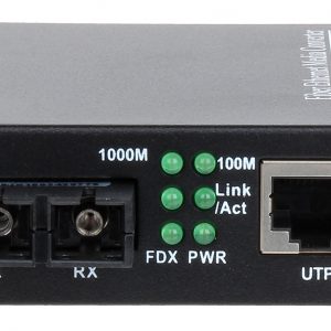 Media konwerter posiada dwa złącza SC. Jedno służy do nadawania (TX) a drugie do odbierania sygnału (RX)