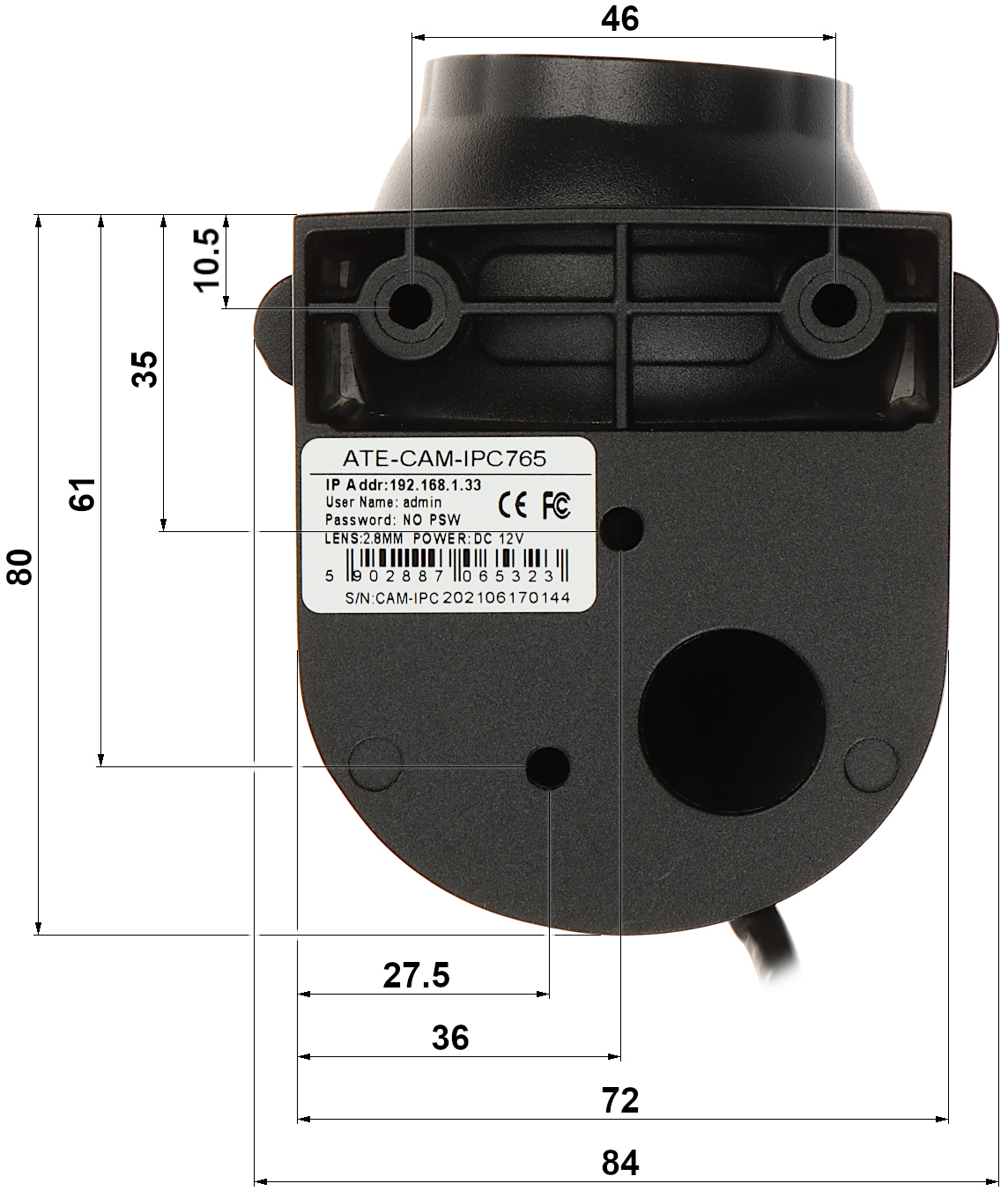 | Obiektyw: | 3.6 mm |