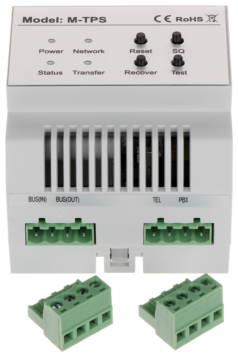 Moduł M-TPS pozwala zwiększyć funkcjonalność wybranych 2-przewodowych modeli paneli wewnętrznych VIDOS o możliwość przekierowania wywołania na maksymalnie 3 zdefiniowane przez użytkownika numery telefonu.