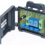 Moduł PK2-12-ZWT składa się z 2 przekaźników zwiernych, sterowanych niezależnie oraz układów konfiguracyjnych ustalających sterowanie przekaźnikami za pomocą stanu wysokiego lub niskiego.