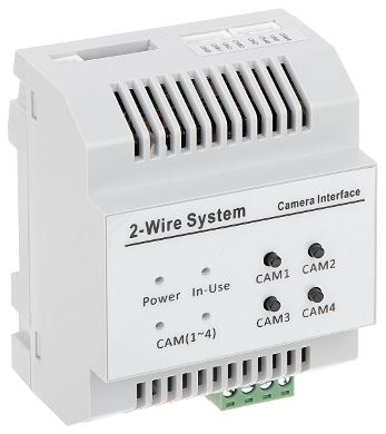 Urządzenie pozwala na przyłączenie dodatkowych 4 analogowych kamer CCTV do cyfrowego systemu wideodomofonowego VIDOS DUO.