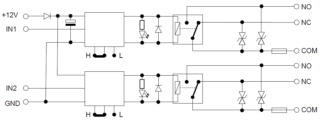 | Obciążalność styków: | 2 x 4 A / 48 V DC/AC 2 x 8 A / 250 V DC / 400 V AC |