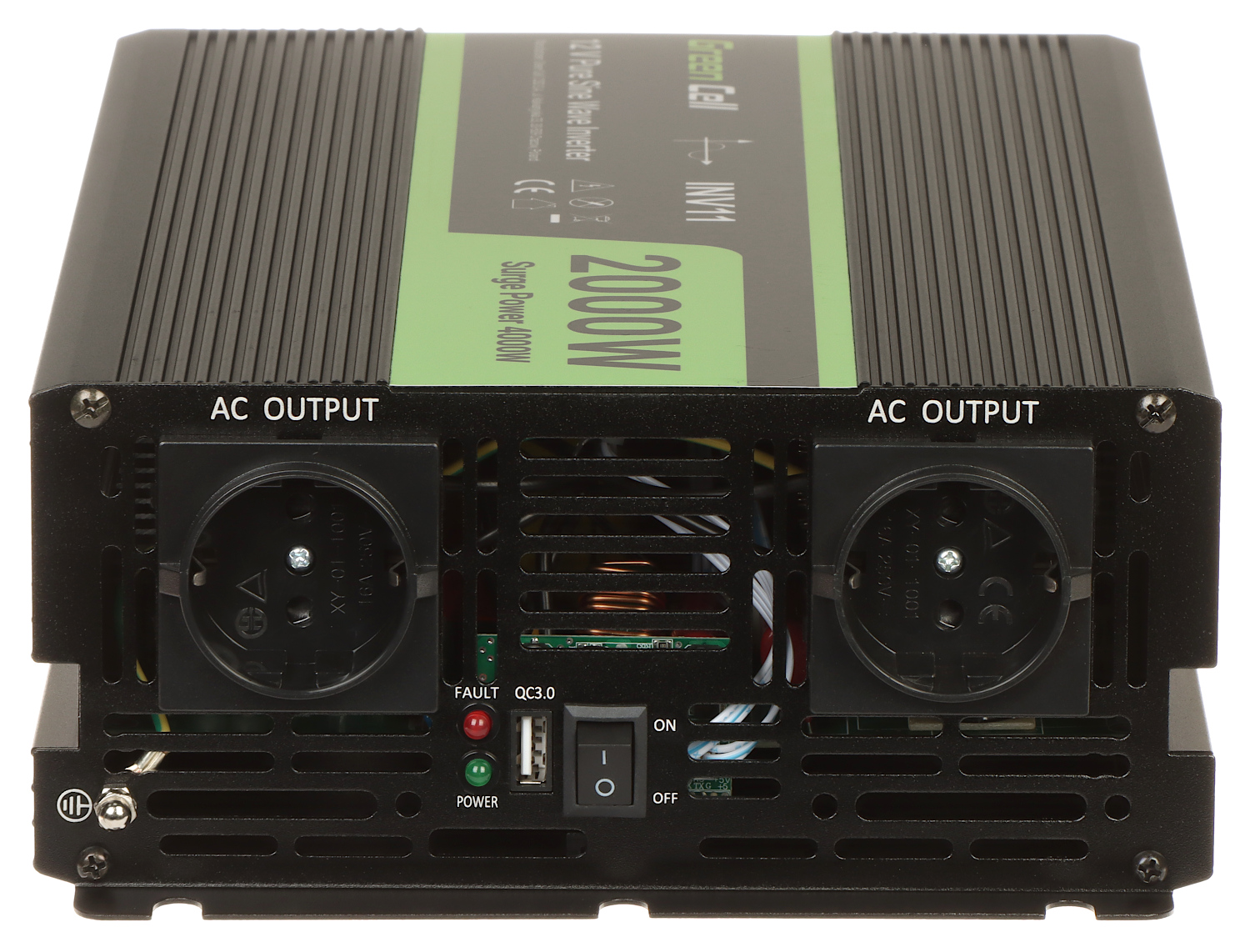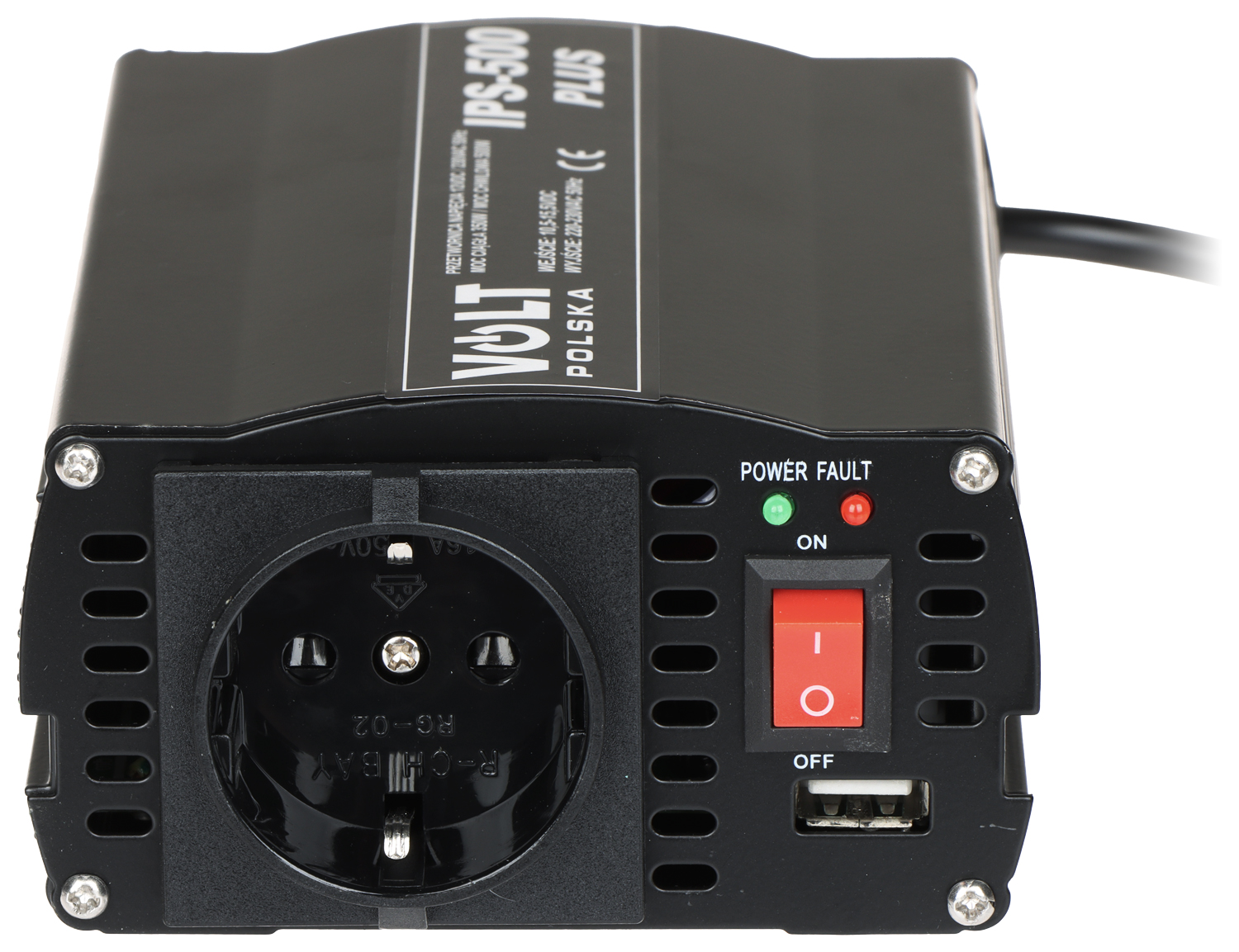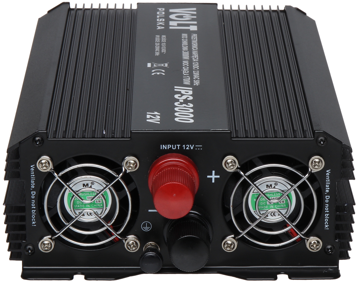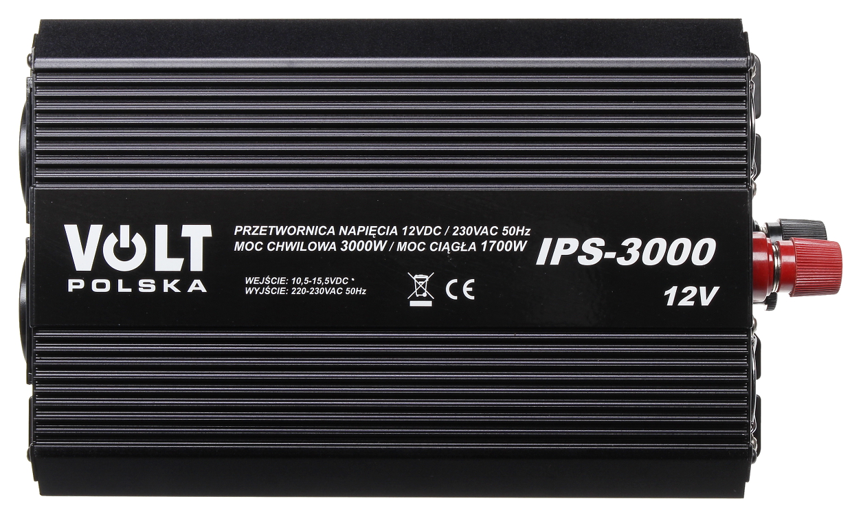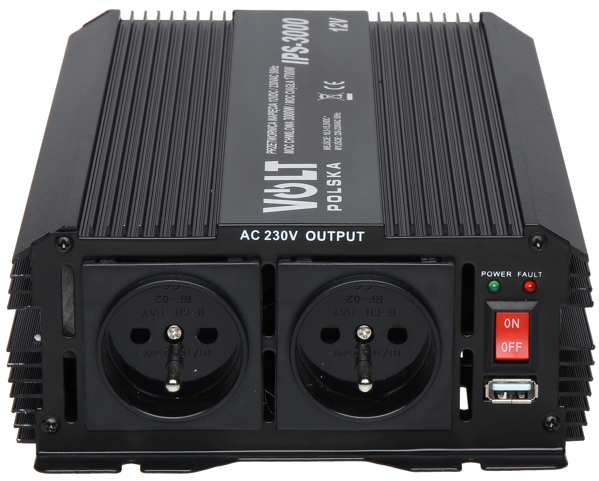 Urządzenie IPS-3000 konwertuje napięcie wejściowe do wartości 230V AC.