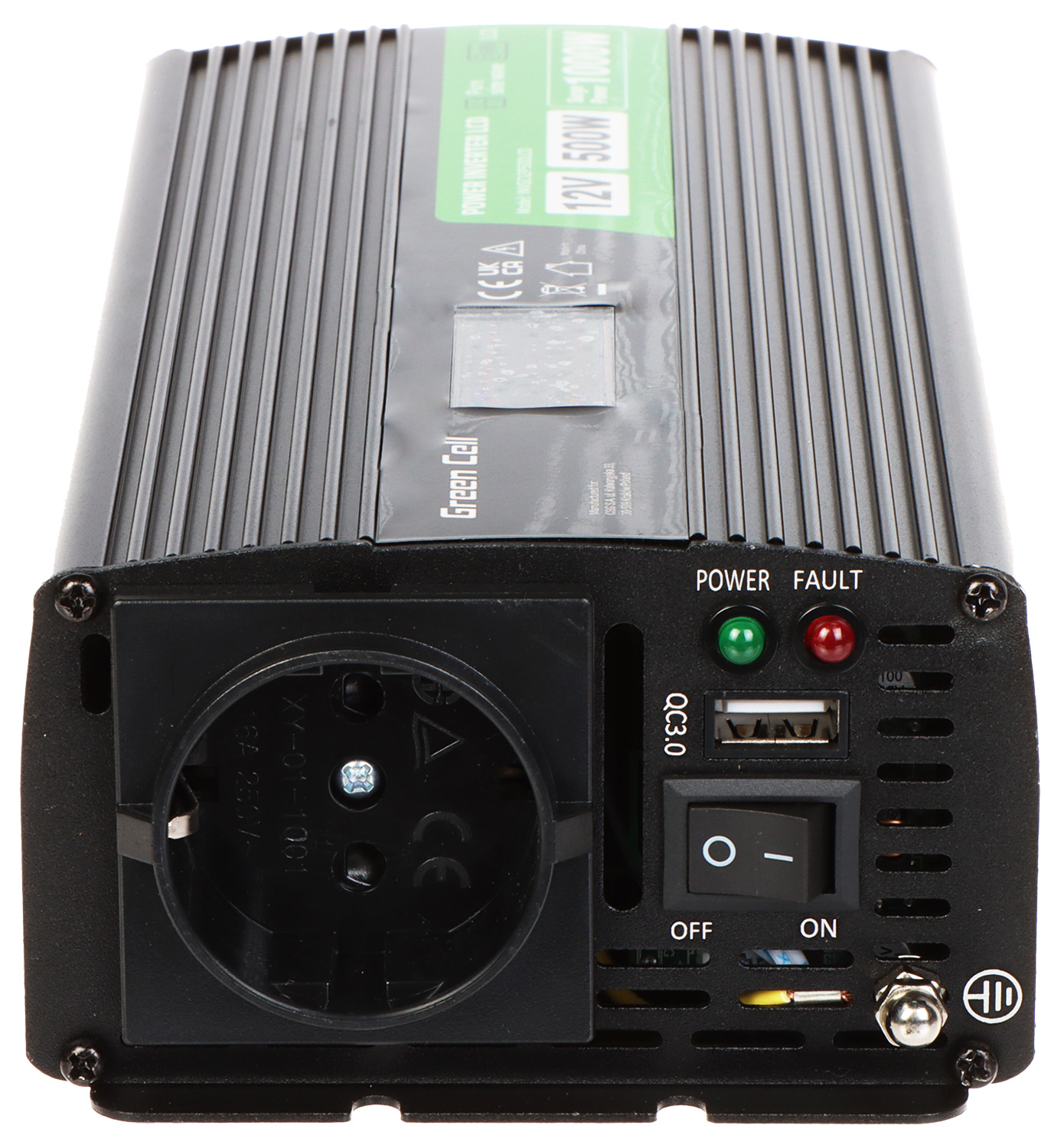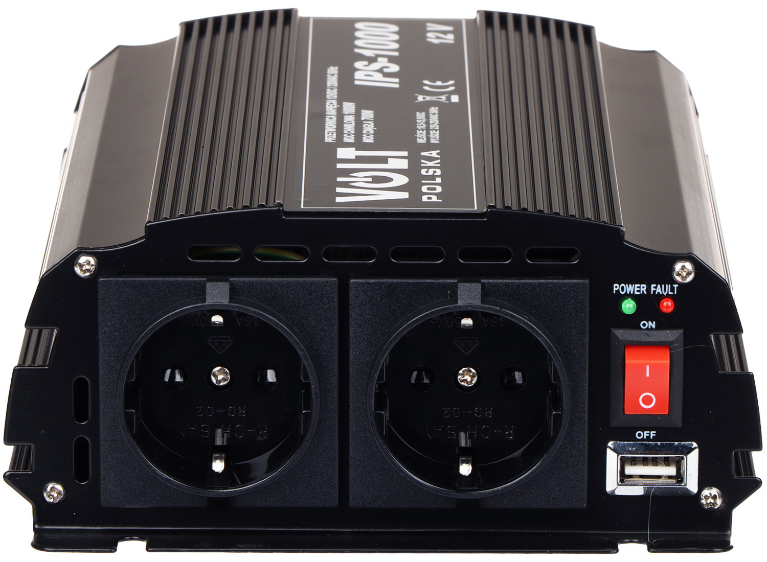 Urządzenie IPS-3000 konwertuje napięcie wejściowe do wartości 230V AC.