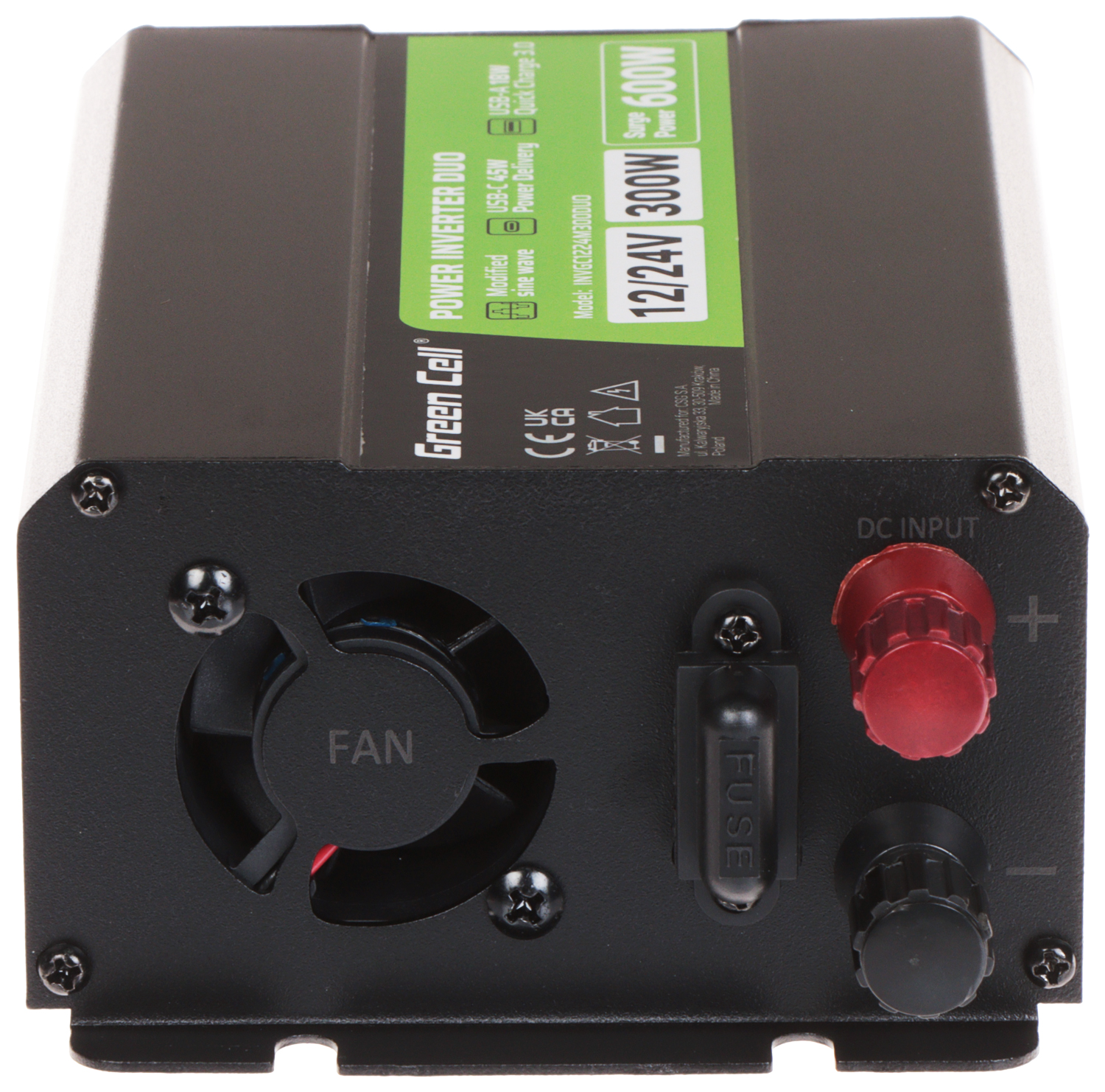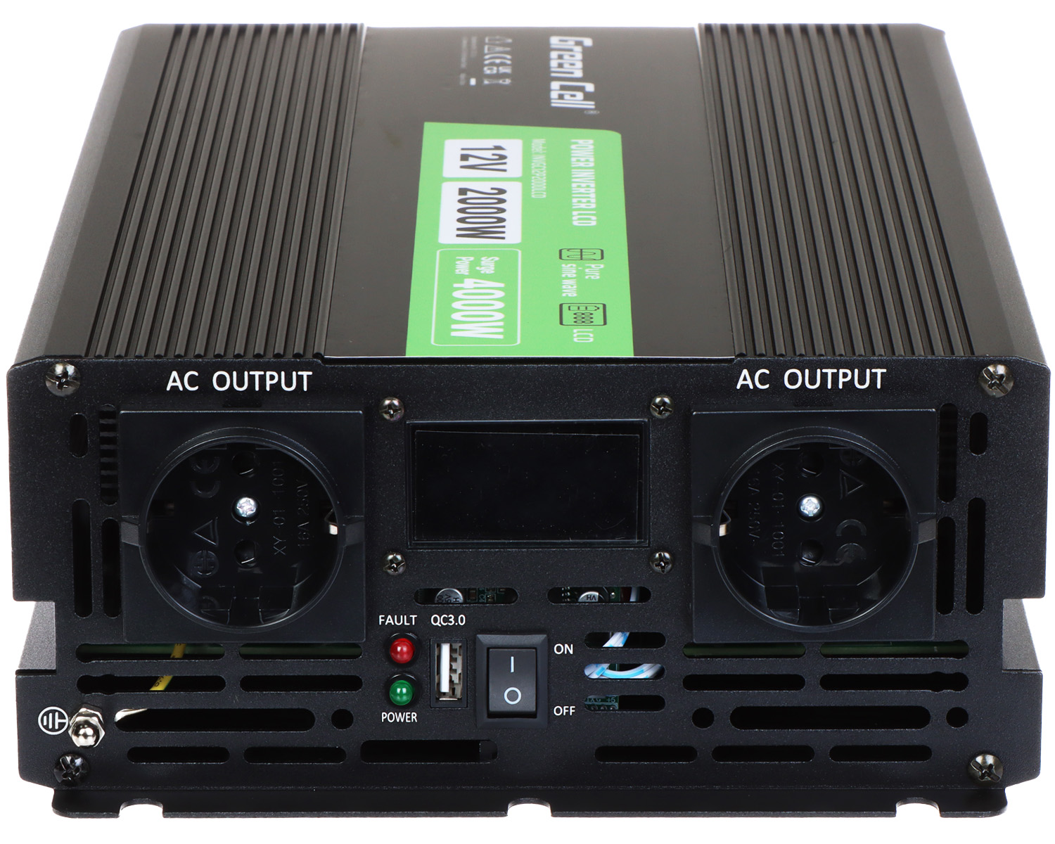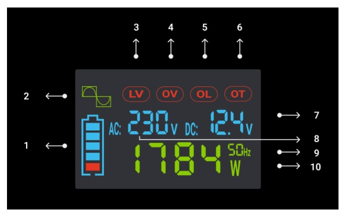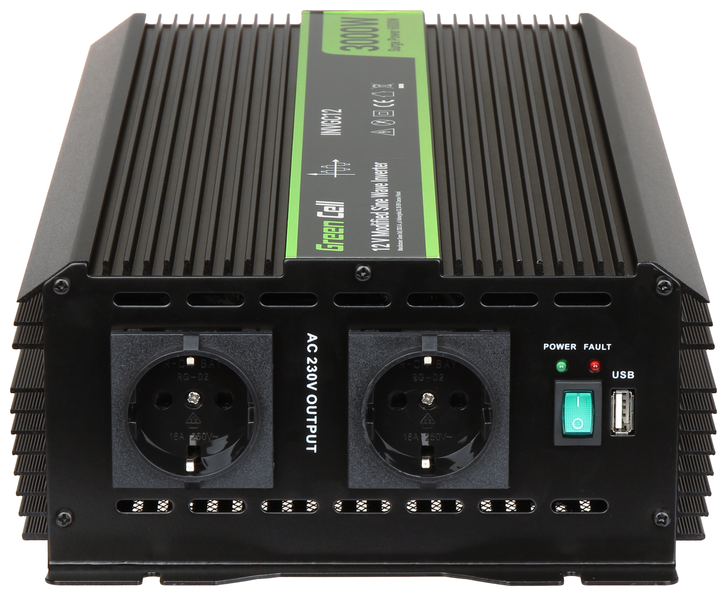 Urządzenie IPS-3000 konwertuje napięcie wejściowe do wartości 230V AC.