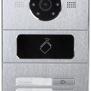 Przycisk dzwonka: 1 szt. ; Przetwornik: 2.1 Mpx CMOS ; Rozdzielczość kamery: 1920 x 1080 ; Kąt widzenia kamery: 180 ° ; Oświetlacz IR; Wejścia alarmowe: 4 szt. ; Wyjścia przekaźnikowe: 2 x NO/NC ; Wybrane cechy: Komunikacja dwukierunkowa, Wykrywanie sabotażu – oderwania od podłoża ; Zasilanie: PoE (802.3af), 12 V DC ;