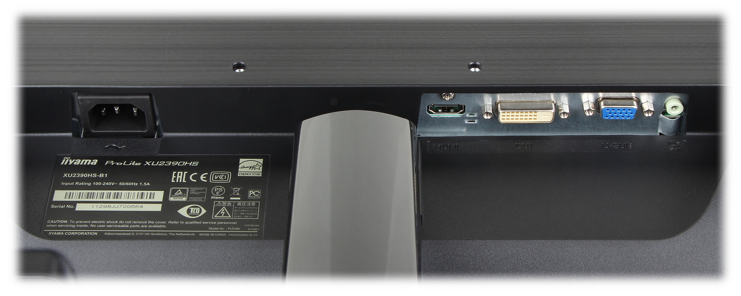 Monitor wyposażony jest w analogowe wejście VGA i cyfrowe HDMI oraz posiada certyfikaty TCO i Energy Star.