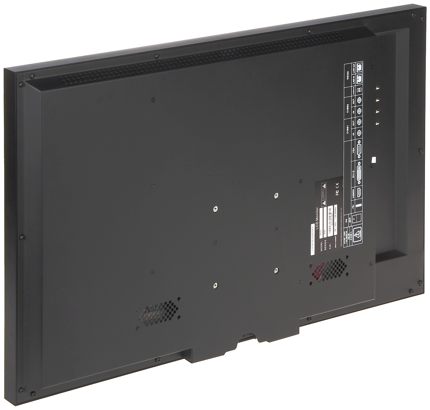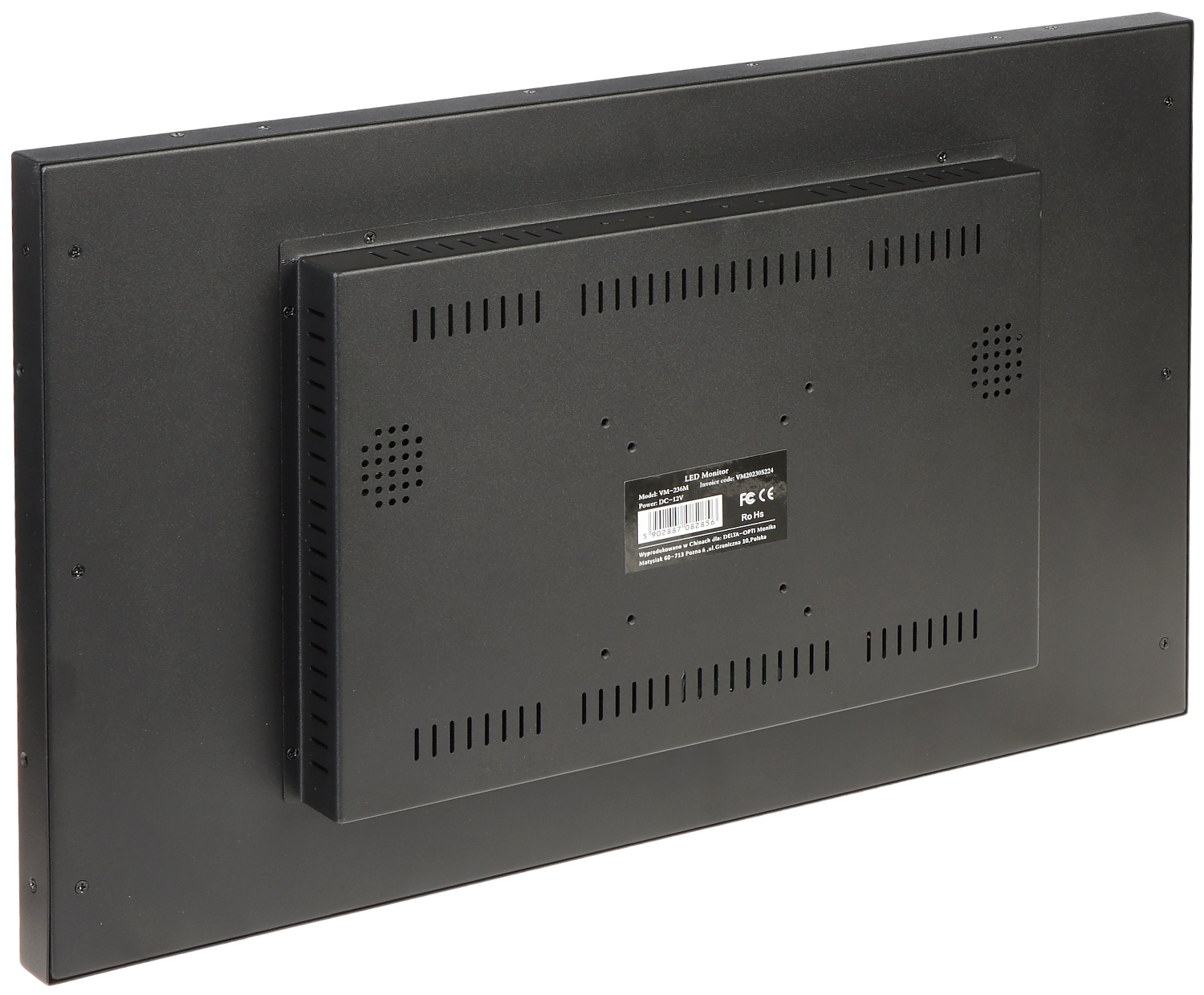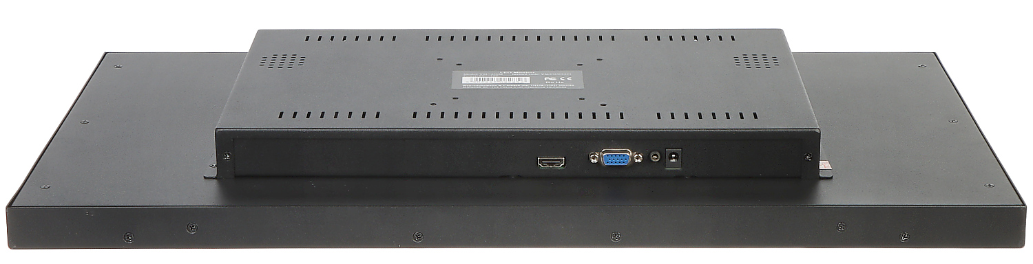 Monitor przemysłowy w solidnej metalowej obudowie.