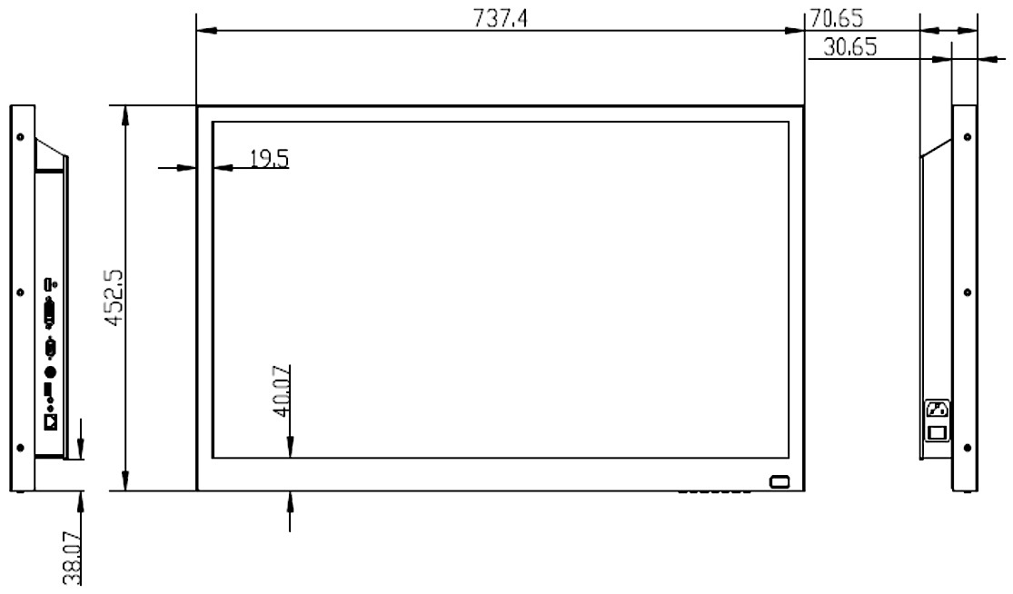 Monitor przemysłowy w obudowie z tworzywa sztucznego.