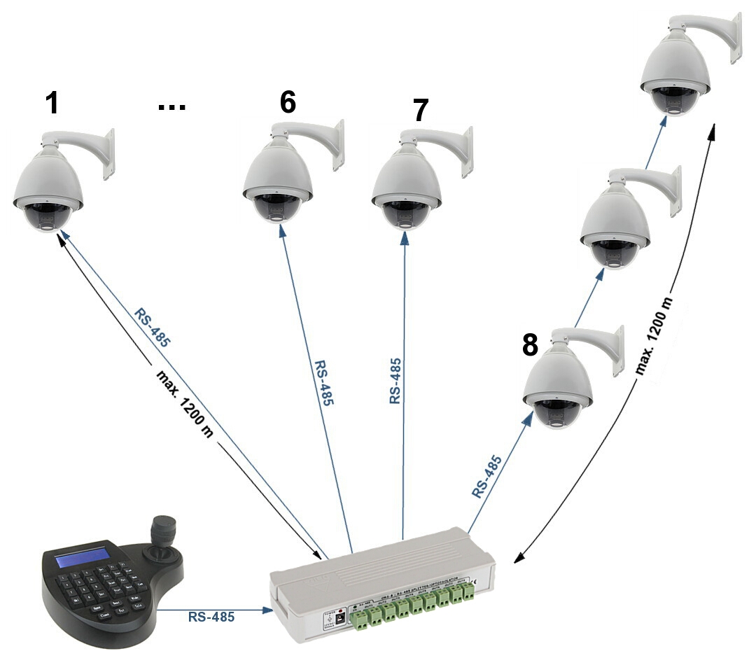 | Zasięg transmisji: | 1200 m (wyjście RS-485) 800 m Kabel koncentryczny |