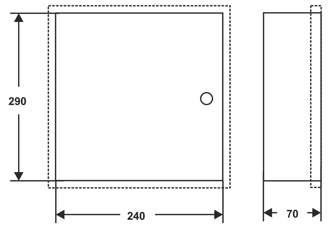 Materiał wykonania: Stal – malowanie proszkowe ; Wybrane cechy: Zamykane na zatrzask – Click ; Wymiary zewnętrzne obudowy: 295 x 345 x 92 mm ; Wymiary wewnętrzne: 290 x 340 x 80 mm ;