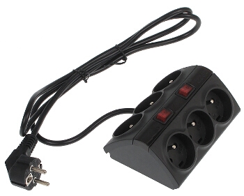 | Liczba gniazd sieciowych: | 3 gniazda dwubiegunowe 10A/250V w tym 1 ze stykiem ochronnym |