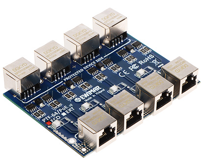 AXON-MULTINET-4 jest wielokanałowym urządzeniem przeznaczonym do ochrony przeciwprzepięciowej urządzeń dołączonych do sieci Ethernet 10/100/1000 Mb/s, takich jak: karty sieciowe, huby, switche, routery, itp. Urządzenie to składa się z 8 niezależnych kanałów (we/wy), w obrębie których zabezpieczone są 4 pary przewodów w skrętce UTP z odprowadzeniem ładunku do ziemi