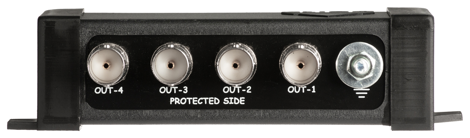 Chronione urządzenie należy podłączyć do wtyku BNC “DEVICE” – WYJŚCIE.