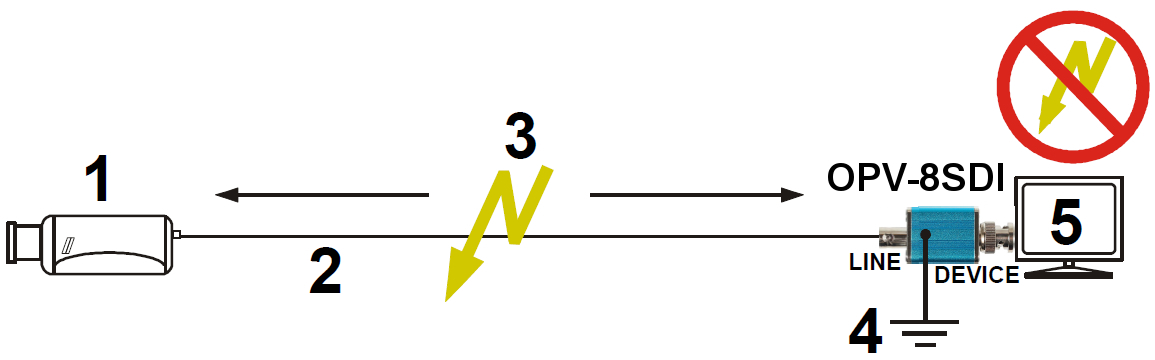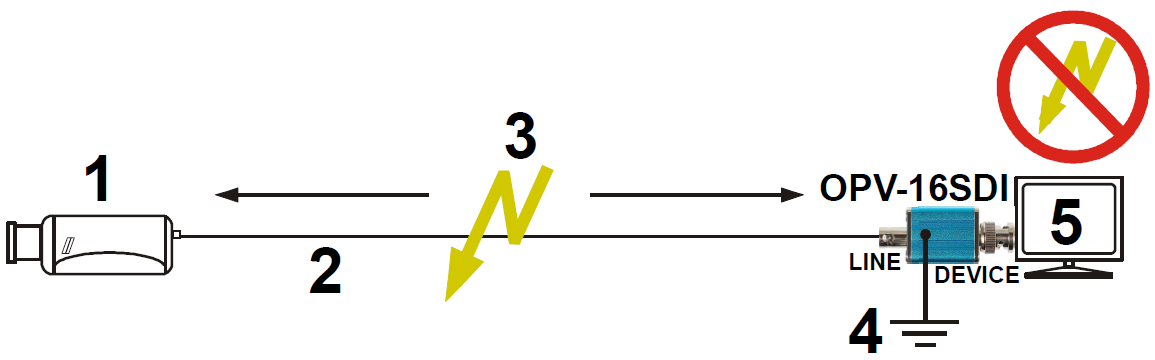 UWAGA! Przed instalacją należy zapoznać się z poniższymi zaleceniami: Prac połączeniowych nie można wykonywać w czasie burzy. OPV-1SDI należy podłączyć do dobrej instalacji uziemiającej. Ogranicznik należy umieścić jak najbliżej ochranianego urządzenia.