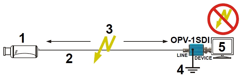 Ogranicznik przepięć OPV-1SDI skutecznie zabezpiecza linię przesyłową umożliwiając odprowadzenie prądu udarowego do ziemi, przez co zapewnia właściwą ochronę przeciwprzepięciową urządzeń elektronicznych.