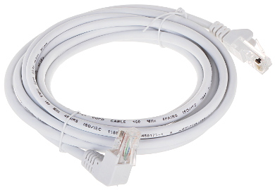 Przewód: UTP kat. 5e : RJ-45 – Wtyk prosty / RJ-45 – Wtyk kątowy ; Kolor: Biały ;