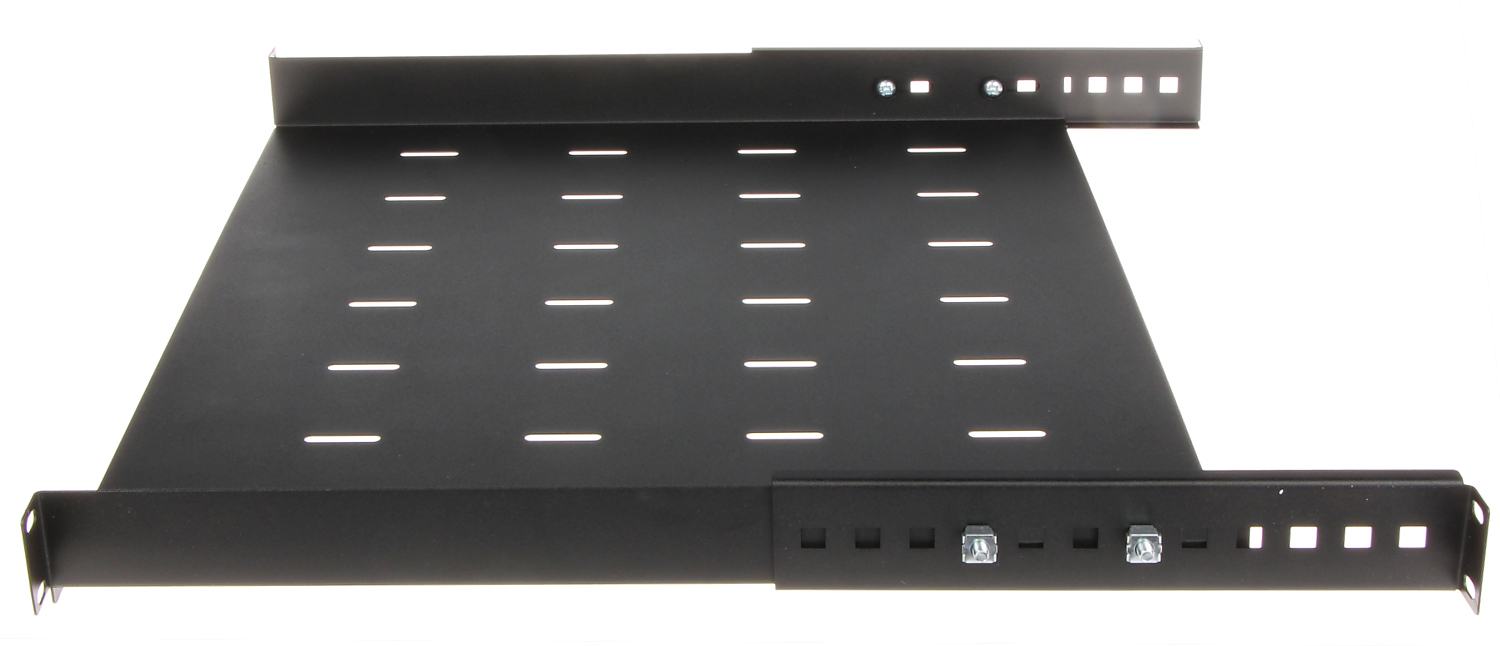 Regulowana półka do szafy RACK 19″, przeznaczona do montażu urządzeń nie posiadających obudowy przystosowanej do montażu w szafach RACK
