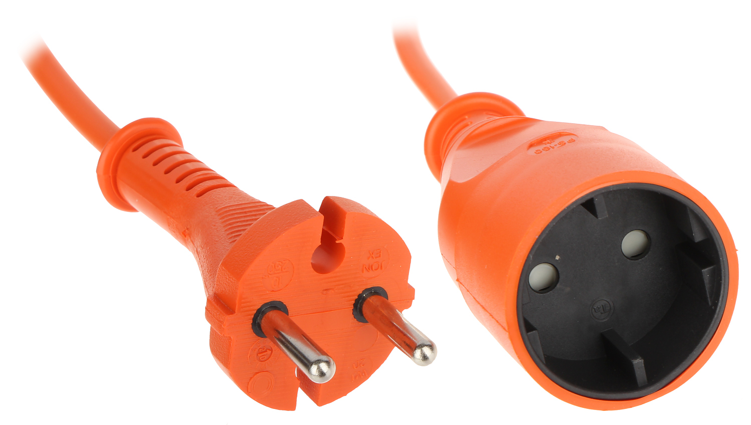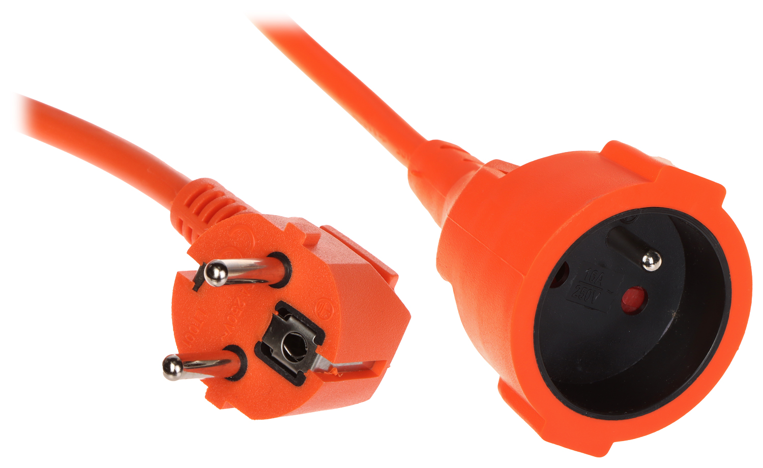 Przedłużacz jednogniazdowy bez uziemienia do zastosowań wewnątrz i na zewnątrz pomieszczeń