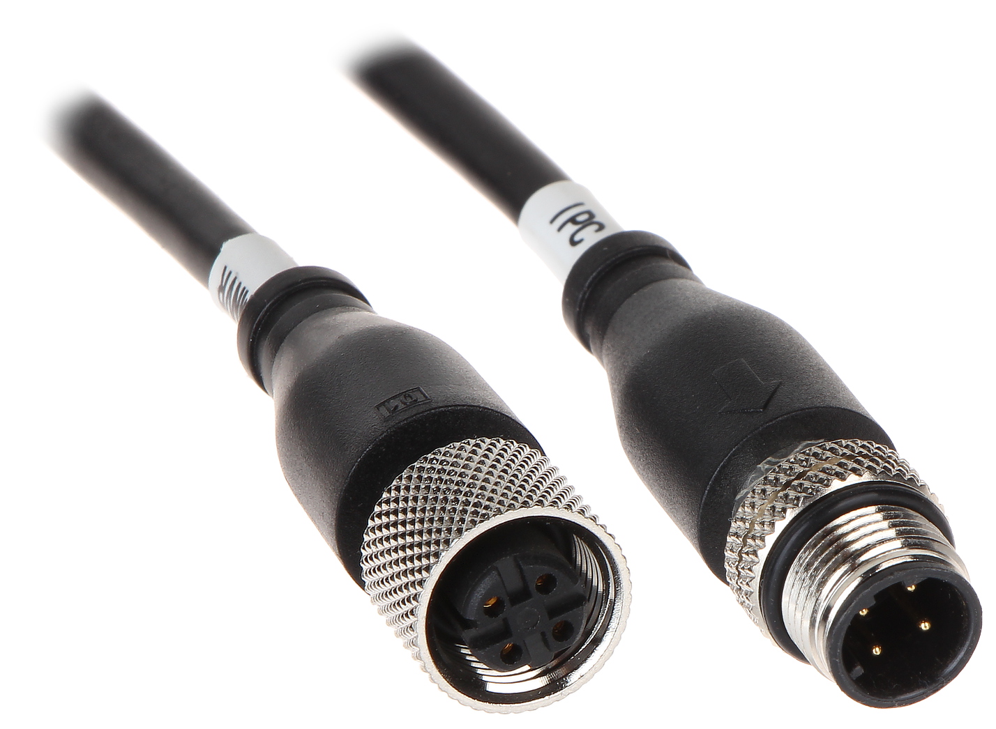 Przewód połączeniowy zakończony gniazdem oraz wtykiem M12 4-pin.