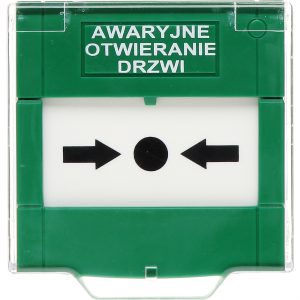 Przycisk do wyzwolenia sygnału otwarcia drzwi w systemach kontroli dostępu.
