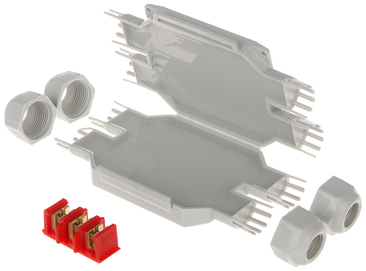 Uniwersalna puszka montażowa wypełniona żelem, umożliwiająca połączenie przewodów elektrycznych, telefonicznych, sygnałowych, antenowych itp. w klasie szczelności IP68.