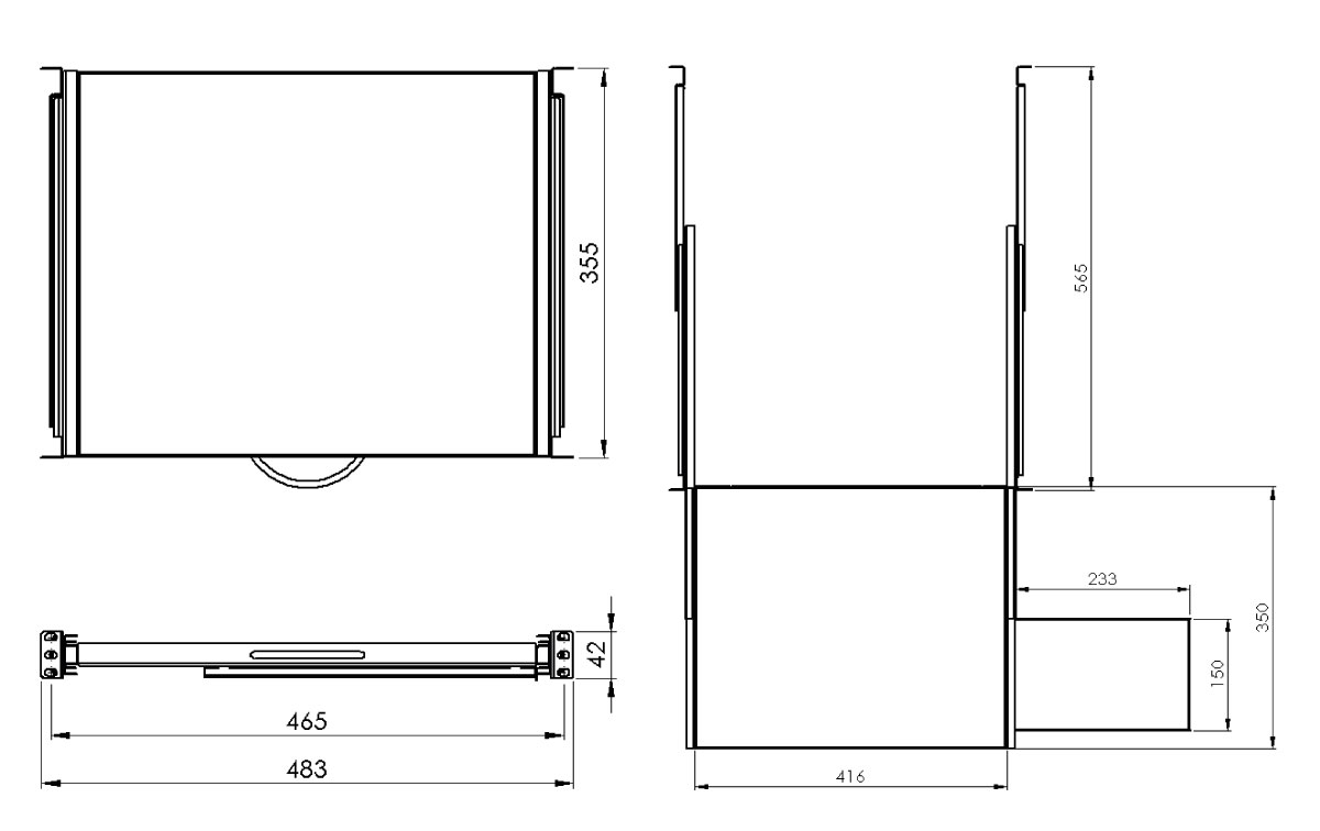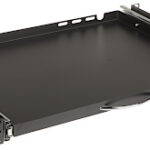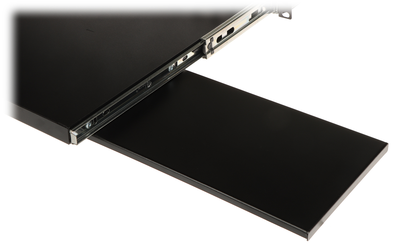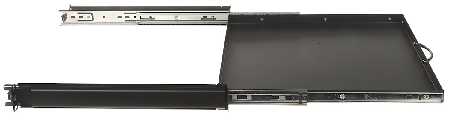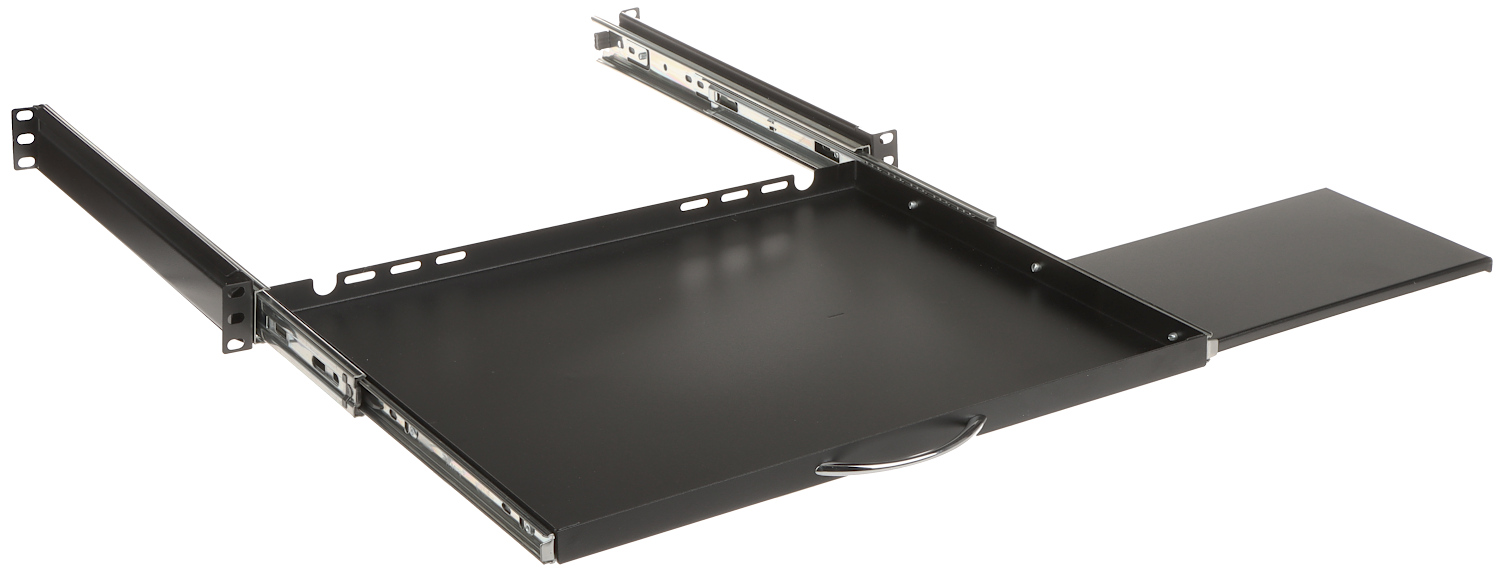 Wysuwana szuflada P19R/350/B-KM pozwala wygodnie przechowywać klawiaturę oraz mysz komputerową w szafie RACK 19″
