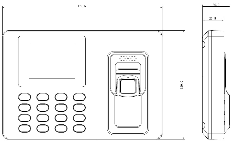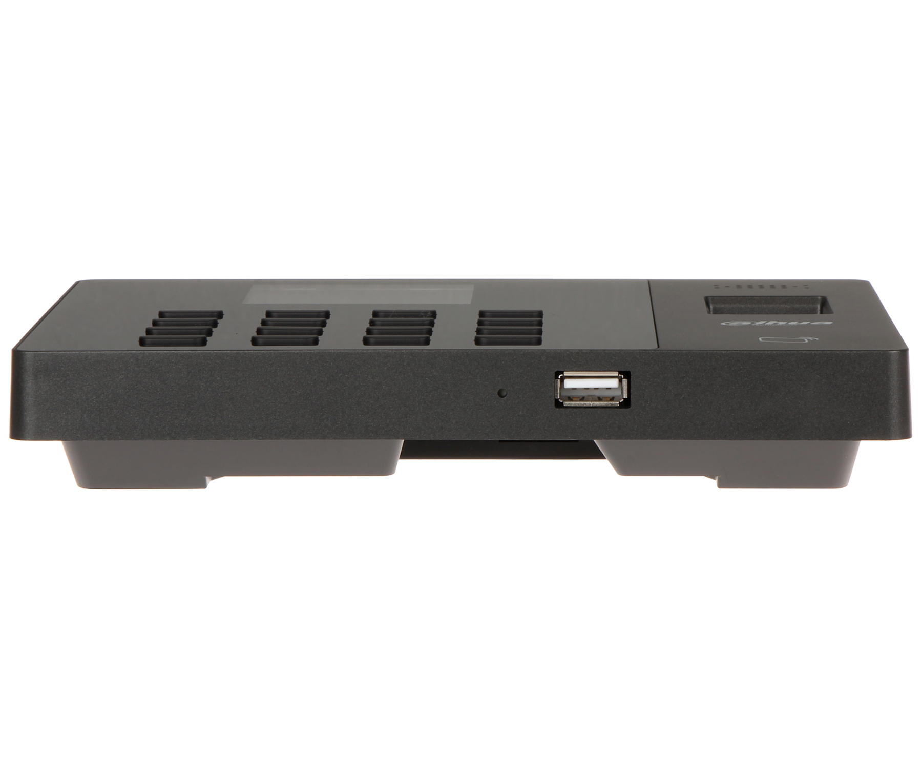 Rejestrator czasu pracy jest urządzeniem samodzielnym, wyposażonym w klawiaturę, czytnik RFID oraz czytnik linii papilarnych.