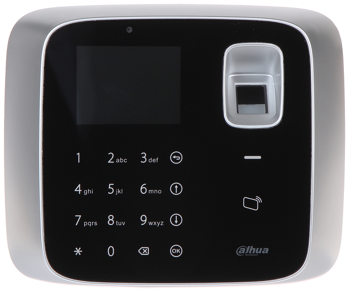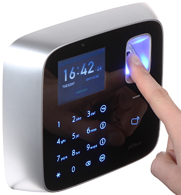 Rejestrator czasu pracy jest urządzeniem samodzielnym, wyposażonym w klawiaturę, czytnik RFID oraz czytnik linii papilarnych.