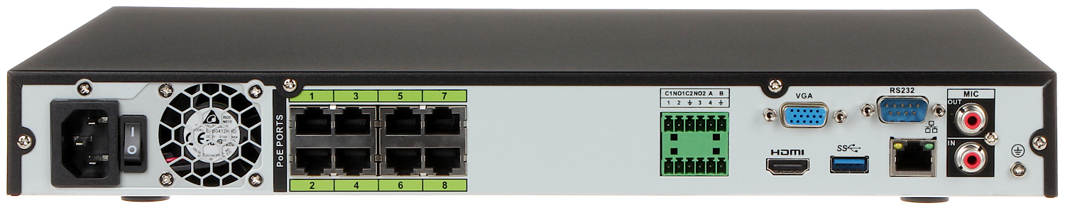 | Switch PoE: | Wbudowany 16-portowy switch PoE, 25.5 W / Kanał, PoE (802.3af/at) + ePoE + EoC Porty 1-8 wspierają ePoE & EoC |