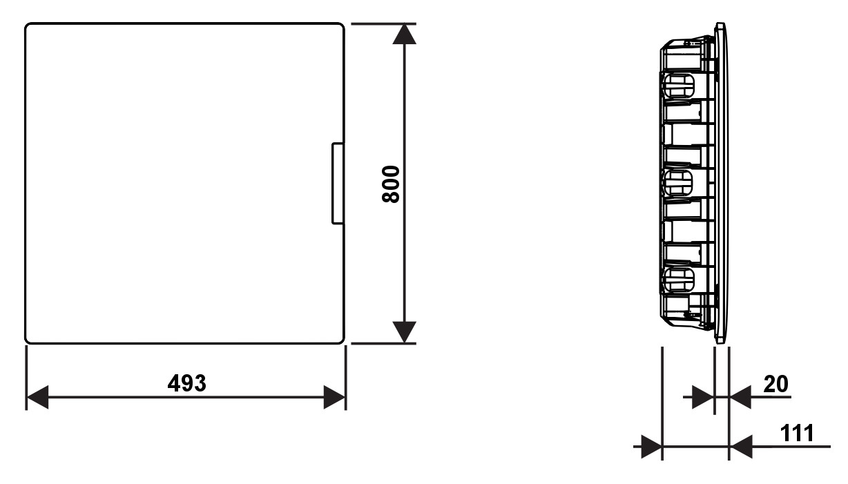 | Wymiary: | 334 x 526 x 122 mm , 289 x 508 x 80 mm – skrzynka podtynkowa |