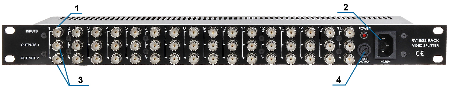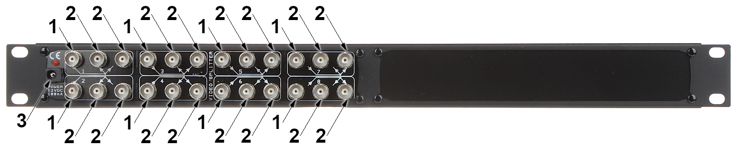 | Diody LED: | Diody LED wskazujące poprawność działania urządzenia : Power, 16 x Video |