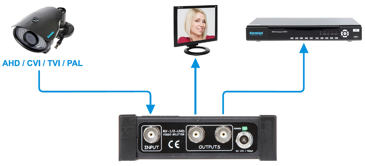 Rozgałęźnik wideo RV-1/4P umożliwia rozdzielenie sygnałów wideo