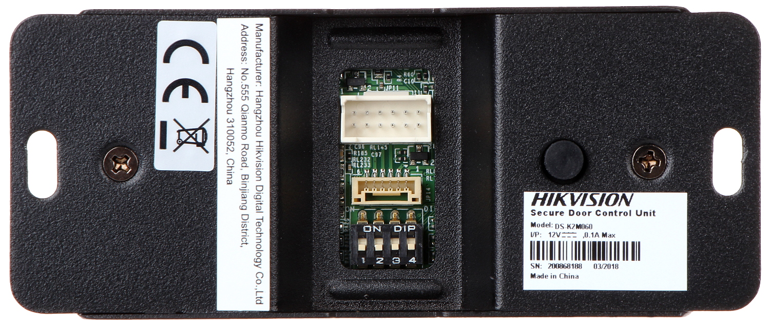 Sterownik drzwi DS-K2M060 jest urządzeniem pośredniczącym w przekazywaniu informacji między czytnikiem zbliżeniowym, przyciskiem wyjścia, kontrolerem dostępu oraz zworą elektromagnetyczną.