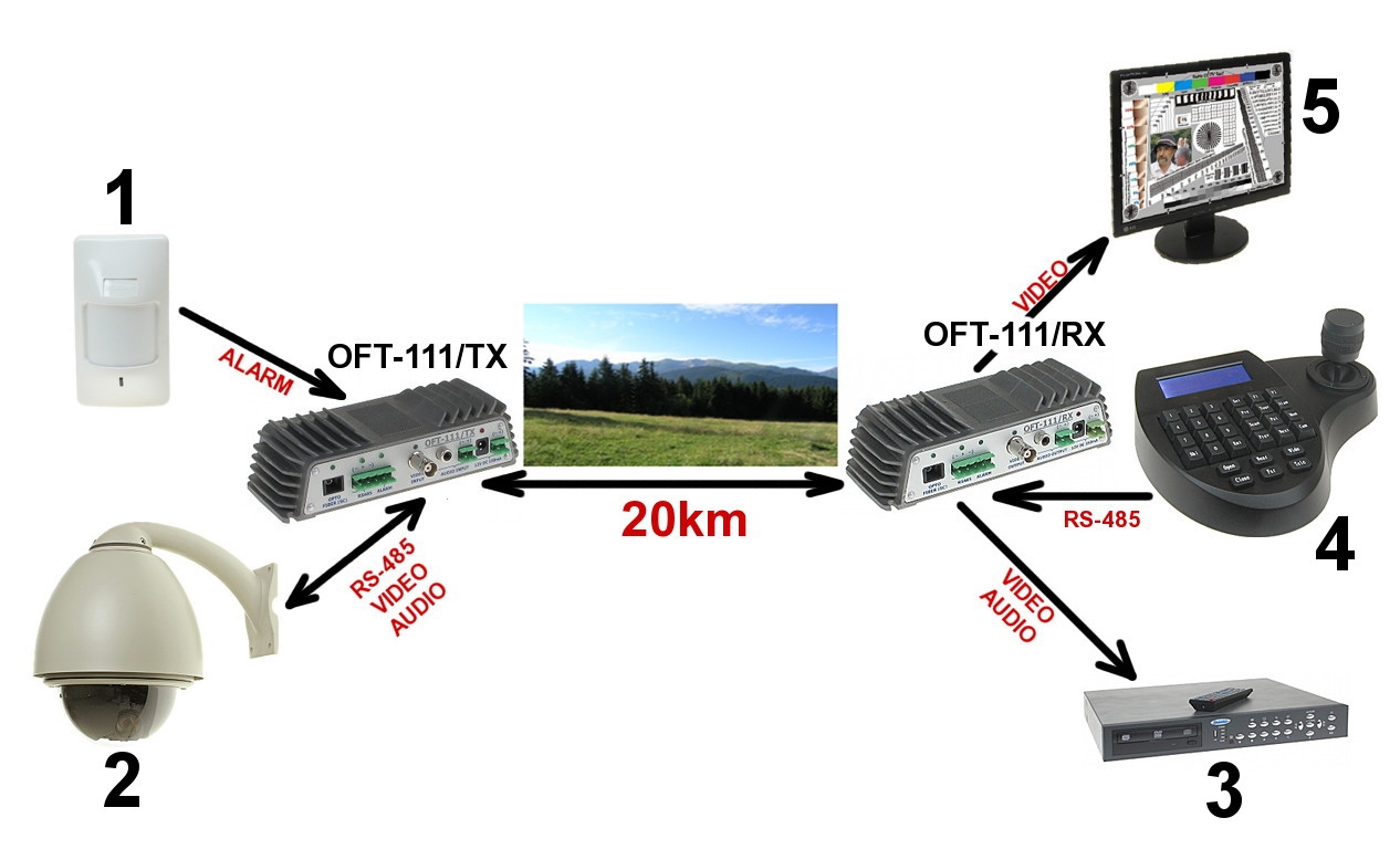 Umożliwiają transmisję 1 sygnału analogowego video, 1 sygnału audio, 1 kanału danych telemetrycznych (RS-485) oraz posiadają 1-kanałowy moduł alarmowy.