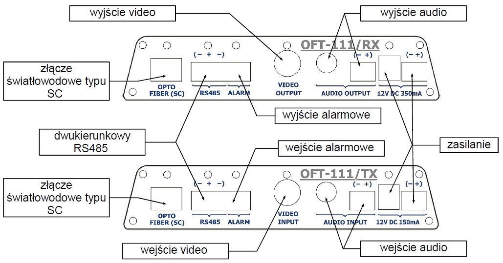 Urządzenie OFT-111 składa się z dwóch odrębnych modułów: nadajnika i odbiornika.