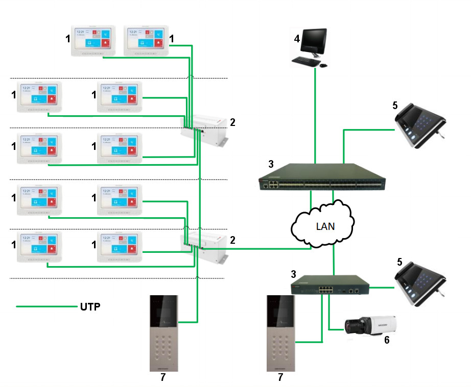 Urządzenie umożliwia obsługę oraz zasilenie maksymalnie 6 paneli wewnętrznych lub wideodomofonów.