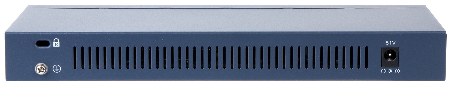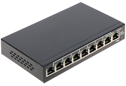 Porty LAN: 8 x RJ45 10/100 Base-T ( 8 x IEEE 802.3af lub 4 x PoE (802.3at) + 4 x LAN ), 1 x RJ45 100 Base-T – Uplink ; Szybkość transmisji: 10 / 100 Mb/s – 9 x Porty LAN & PoE ; Maksymalna sumaryczna moc: 123 W ; Tablica adresów MAC: 4k ; Zasilanie: 51 V DC / 2.5 A ;